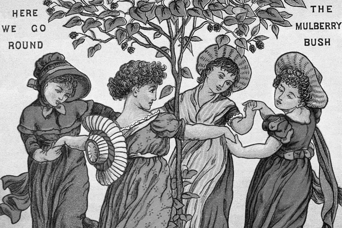 Although this rhyme likely started out using Bramble Bush (mulberries actually grow on trees), historian R. S. Duncan suggests this version came about at Wakefield Prison in England. The facility has been home to an extremely recognizable mulberry tree for centuries, and the theory goes that Victorian female prisoners used to dance around it and made up the rhyme to keep their kids amused. (Back then, men, women, and children were often confined together.) The tree eventually died in 2017, but it was replaced with a cutting from the original.