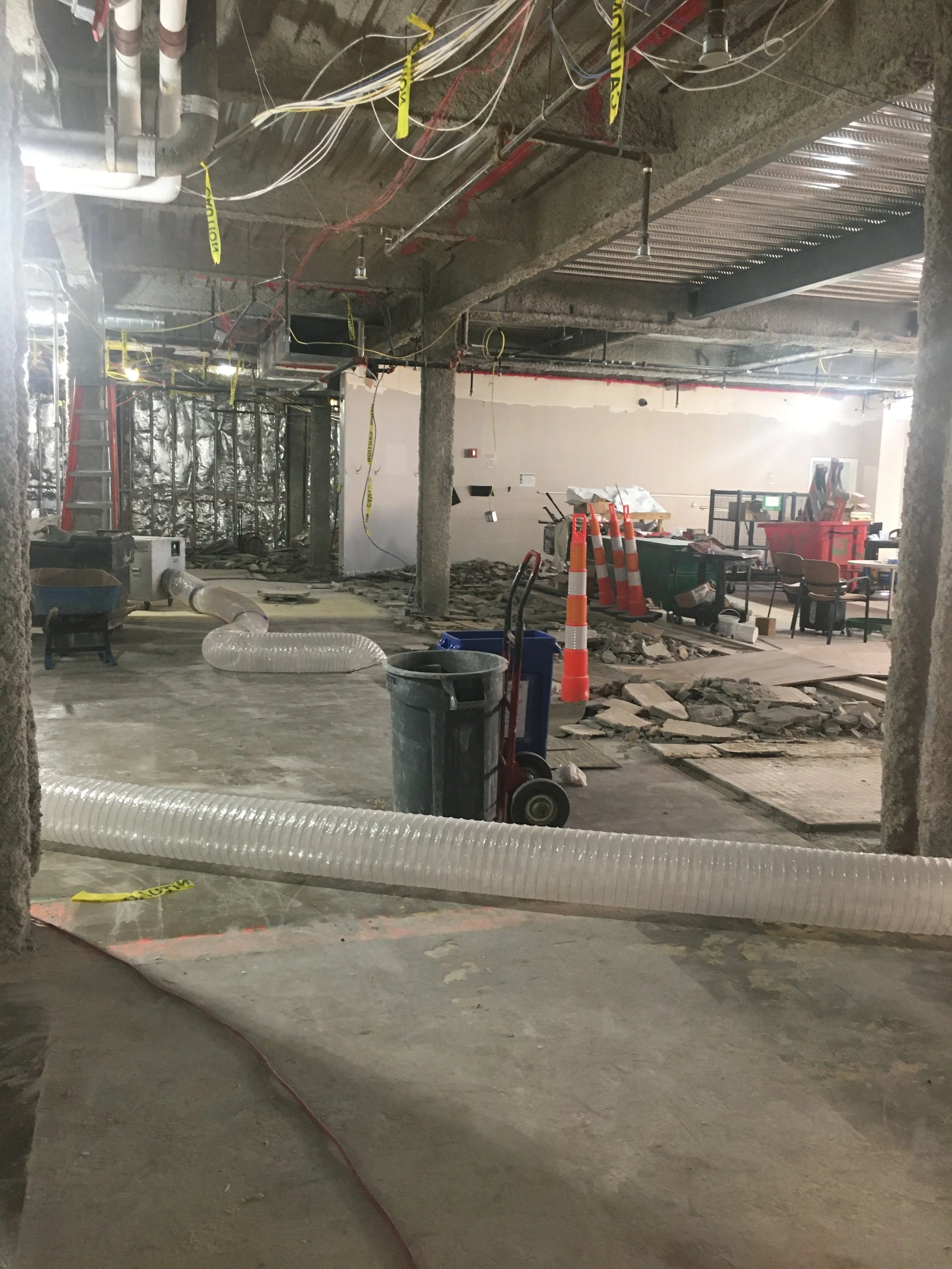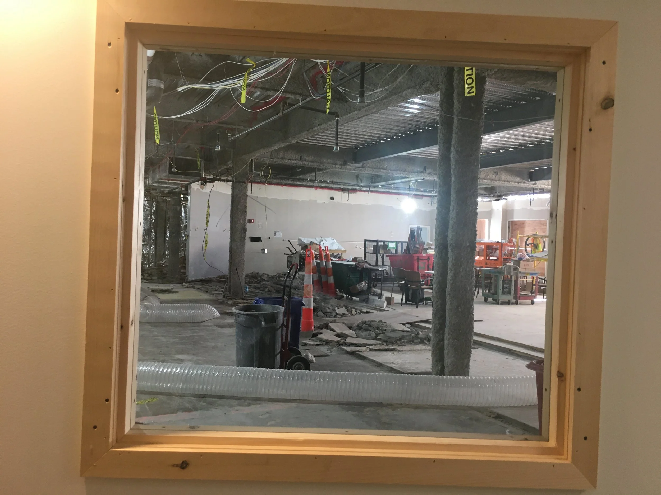 It’s here! On the Terrace Level. Down the long hallway towards the far door to the Fitness Center. It’s The Window! Our view to the construction world of Refresh. The following pictures were taken over a weekend. Get ready for the work week!